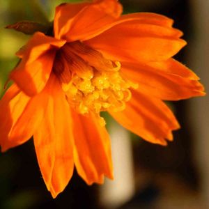 9月に種まきをしたキバナコスモスです.草丈15センチメートル程ですが,最初の花が咲きました.もう少し早く蒔いてやればよかった. 撮影 Dec. 22, 2020