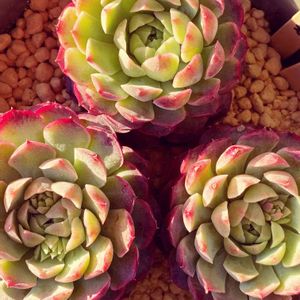 【エケベリア属 シャーロット ローズ】 Echeveria 'Sharlot Rose' 中国名 夏洛玫瑰 タグは【シャーロット ローズ】🌹 「🏷️水曜ローズショー」に 参加させていただきますね 外側にかけて紅くなる グラデーションが美しく、 コロンと小さくまとまった ロゼットも愛らしい💗 ネットオークション等では、 「韓国苗の新品種」 として売られてみえます ビスタさんのサイトでは、 「シャルル ローズ E. 'Shallerose' と同じものかもしれない」 との事ですが詳細は不明との事 シャルル ローズの交配は 「ヒアリナ×グログラーサ」 との書き込みを見たのですが、 「エレガンスヒアリナ×グロブローサ」 の事かな?と勝手に推測 また似た名前とロゼットに、 【チャールズ ローズ E. 'Charles Rose'】 がありますが、こちらも 同じではないか?と勝手に推測 どなたかお詳しい方、 教えて下さいませ ( ꈍᴗꈍ) 「エケベリア 野外5℃ OK」 の生産者さんの苗 ☆Source☆ 【多肉植物専門店 ビスタ】さん https://pukubook.jp/detail/Echeveria_Sharlot_Rose