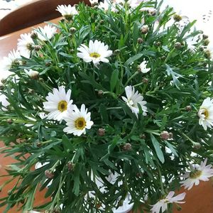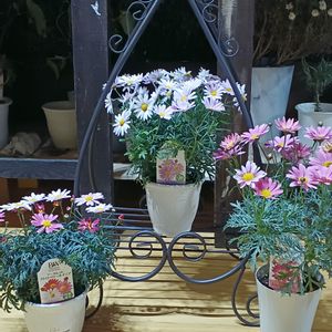 PWマーガレット ローリーがポツポツ咲いて来ました この子は今年の3月下旬にスーパーの花コーナーからのレスキュー苗🌱 勉強させてもらおうと思って連れ帰って来たので、時期としてはどうなんだろう?と思いつつバッサリ切り戻して植え付け 更にマーガレットは半日陰での管理が基本だったそうなのに 南向き壁際のガンガン日光が当たる場所で夏を越し(本当に申し訳ない) 秋に少し整えて…の今。 …ではなくて、中心が偏っているのが気になってしまって ごく最近根を削って植え替えられるという嫌がらせを受けての 今です。 ゴメンヨー マーガレットって…と言うよりローリーが強いんでしょうか ありがたいなぁ。。 中心が偏ってしまう原因は5枚目画像の枝 これが思わぬ場所から育つのでどうしても一部分がモコッとなってしまうのです⤵️ この枝は残さずカットすべきだったようです✂ 勉強になります と言う訳で今も一部モコッとなっているローリー 咲き揃ったらモコは気にならなくなるのでしょうか 引き続き観察します