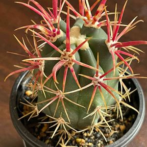 わりと前からいるんだけど 初めて登場かな?🤔 丸い草姿から背が延びますた🌵 ウチに来たときは全部 赤いトゲトゲだったんだけど 頭から赤紫・白・赤 と、変化しちゃった。 それにしても… 毎回植え替え、ためらうぜ😅 刺ささるし、引っ掛かるし😫