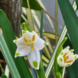 スノーフレーク(大待雪草) ヒガンバナ科の多年草で「白いスミレ」とも言われ、スミレのような香りを放ちます♪😊別名を「鈴蘭水仙」とも言い、花は鈴蘭のような釣鐘形でフリルと緑の水玉模様の斑点が可愛いですね😍 よく似たスノードロップと間違われそうです😅