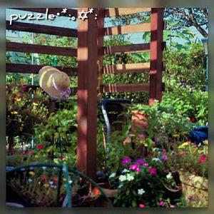 パーゴラの下の‥‥ オリヅルランとポーチュラカ🌺
