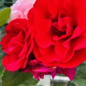 薔薇🌹 ギー・サヴォア シュラブローズのマイガーデンローズ。 2階ベランダでオベリスク仕立てで育てています。赤の花弁にピンクの絞りが入った香りの🌹