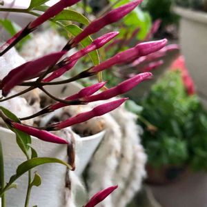 羽衣ジャスミン 赤ーい蕾で 🏷金曜日の蕾たち 参加します。 3年目のお花✨❇️✨ 昨年開花は4/20だから 開花期は変わらず🎵 待ってるよ〜💕 と 呟いてマシタ(*≧∀≦*)