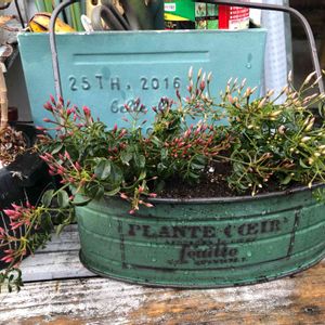 おはようございます☀😃 昨日から暖かく庭仕事日和ですね❣️先日購入したジャスミンちゃんを昨日見つけた器に移しました💓💓も少しで咲きそう💓💓
