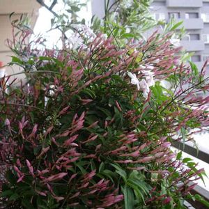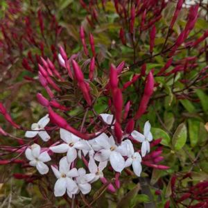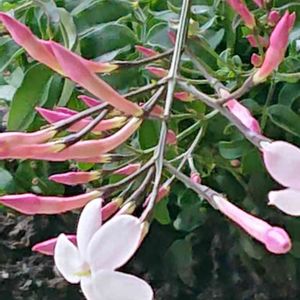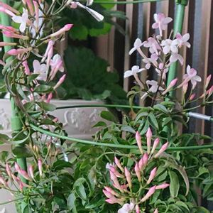 羽衣ジャスミンです。 お花が 開花するに連れて、 赤から ピンク そして、白花に、変わるそうです! 楽しみ😆✨です。