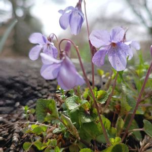 ここのタチツボスミレは、すごく素敵な色なんです。 紫色より、淡いピンク色をしています。透明感があります。 昨年も、ここで、会いました。 今年も、はっと、足を止めてしまいました。 綺麗に咲いたところに、出会えて感謝しました。 葉を見ると、アカフタチツボスミレだとわかります。(⑤) 毎年、この色に会えると嬉しい お花です。 3.28