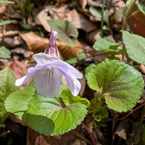 アカフタチツボスミレ(赤斑立壷菫)スミレ科 スミレ属 山道から降りてくる道路沿いに咲いていました。 葉っぱの葉脈に赤い斑があるのでアカフタチツボスミレですね。 側溝の中で撮ったので、いろんな方向が撮れませんでした。