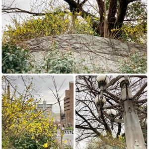 四谷見附橋の袂で「レンギョウ」の花が満開。ここの堤はソメイヨシノ桜の名所。 1週間後はピンク色に染まるだろう。