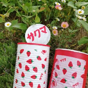 こんばんは🌙😃❗ 先日の フリマの時 タニ友さんからもらった サクマの🍓飴 2個 食べた後 包み捨てようと 思ったけど かわいいから 超簡単リメ缶 即興で作ったよ😂 白と赤 どっちが お好みかな?😅 エリゲロンの かわいい花が 咲き始めたので 一緒に パチリ📷