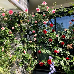 こんにちは♪ 今日も今朝から降り続いてます☔️ 昨日と同じく午前はヤッケを羽織ってましたがずぶ濡れ💧 着替えて今度はカッパを着用😅 バラは折れた枝や花殻摘み、麻ひもで補強など…秋はこれでいくぞ!って決めた配置も崩し鉢植えはスペースの許す限り優先順位で軒下へ移動😮💨 天気だけは仕方ないのですが‥上手くいきませんね😂 ①ドンファン🌹 背丈位置の花を発見❣️なかなか凛々しい🥰 かなり強く剪定したけど枝はほとんど2メートル越え💦風景として楽しむかぁ😅 ②今年迎えたマリールイーズドゥララメー🌹 最初の花♪でもなんか全然違う💦 花弁少なく色も薄い😂 まだ若いからこんなもんかなぁ〜 ほどほどに咲いてもらいます😉 ③またまたジャンクリストフ🌹 樹勢は強くかなり花付きも良いです✨ 今のところ期待通り🎶 ④⑤庭へのアプローチでこのエリアも好きです🥰 花は少なめだけど雨でリーフはイキイキ🎶 コリウスとダイアモンドフロストの絡みがお気に入り😌 スーパーアリッサムフロスティーナイトも少しずつ咲き始めてます🤍 さてもう少しだけ頑張ります💪