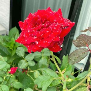 摘蕾していたのですが、数日の雨でさーっと必要最低限しかお庭を見ていなかったら蕾を見逃し、気づいた時にはガクが割れていた新苗ドンファン🌹←まさしくこんな感じで💦 誘惑に負けて咲かせちゃいましたー🤣 めちゃくちゃ良い香り、期待通りの赤😍 これが大きくなってつるを誘引して、沢山咲いたら…🤤💕ワクワクが止まりません🎶