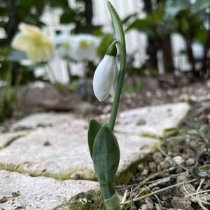 スノードロップが一輪咲きました。 とっても小さいのに、ビックリするくらい存在感がある、この花が好きです🫶 花言葉は「希望」「逆境の中の希望」らしいです✨