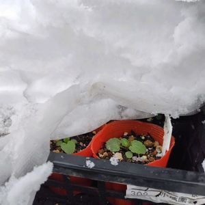 雪が積もりました💦 不織布掛けといて良かったです☃ まだ苗がちっちゃいからかわいそうです🌱