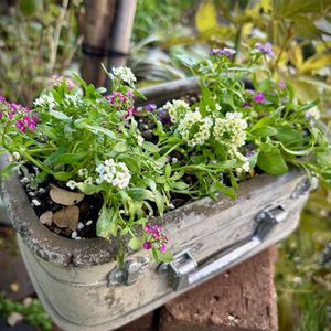 今年もアリッサムのみ寄せ植えしました。 今年の春②枚目…白だけ盛り盛りになったのが少し気になり、今季は白は植えませんでした🥹 白色に見えるのは黄色💛のアリッサムです。