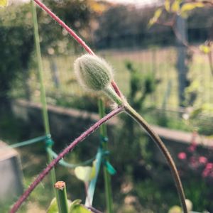 2年前に挿し穂をしたパテンス系のクレマチスです。2年目にしてやっと1つだけツボミをつけるまでになりました。