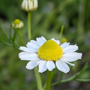 今日のお花💠カモミール こぼれ種から〜🌱 近くを通るとカモミールの甘い香りがします✨