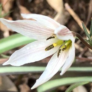先日カタクリの自生地にそろそろかなぁ?と覗きに行きました。 その10日前はハゲ山でしたが、近づくにつれ、山肌に白いものがバァーっと⤴️ ヒロハアマナ🎵 です👍 カタクリの葉っぱもたくさん増えてましたが、この姫は花盛り⤴️ 上手いこと出会うことが出来ました😆 葉っぱのラインがとてもおしゃれでかっこいい👍👍👍