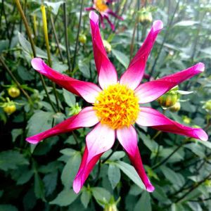 10月9日水曜日☁️ ピンポン玉のようなまるまるとしたダリア🏵️。蛍光色みたいで綺麗でした。なんだか不思議なパワーを持っていそう…🤔みなさんに元気パワーを🤗💓