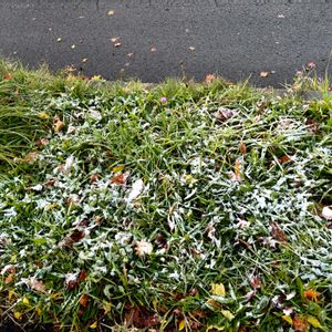 今朝の散歩の景色 昨日のミゾレや雪が解けずに残っていました😨 2枚目 近所の紅葉🍁 3枚目 ハロウィンディスプレイ🎃
