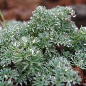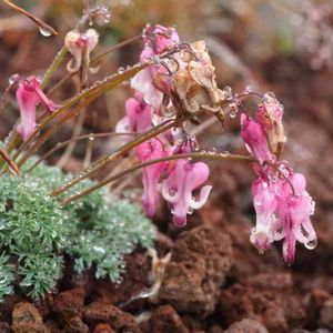 コマクサ 葉に雨の滴がたまって綺麗でした。