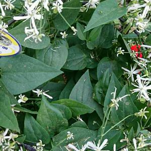 センニンソウが咲き始めた❣️暴れるので去年バッサリ切ったけどやっぱり暴れてる😖でも可愛く咲いてくれたから(๑˃̵ᴗ˂̵)و ヨシ!