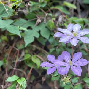 朝起きたら…1輪咲いていました𓂃 𓈒𓏸𑁍 クレマチス ミゼットブルーの 2番花です𓂃 𓈒𓏸𑁍 クレマチスは初めて育てています❁𓂃٭ 昨日、小さな花芽を見つけていたのですが 別の箇所から花が咲いていてびっくりです٭ ただ、とても小さい花です𓂃٭ 肥料不足でしょうか… でも ずっとずっと待っていた花❁𓂃٭ とっても嬉しいです💜🌿 ⋆*❁*⋆ฺ。*⋆*❁*⋆ฺ。*⋆*❁*⋆ฺ。*⋆*❁*⋆ฺ。*