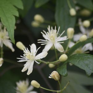センニンソウ 今年も裏の林から順調に伸びてまいりました(⌒‐⌒) まるで花弁のように見えるのは4枚の萼片というのはキンポウゲ科のお約束か(^.^) 次々に開くのが楽しみな金曜日の蕾たち🏷️