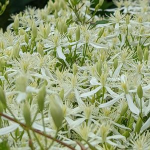 おはようございます。 仙人草が咲き始めました。 春に植え付けたものです。 真っ白な花がとても綺麗です。