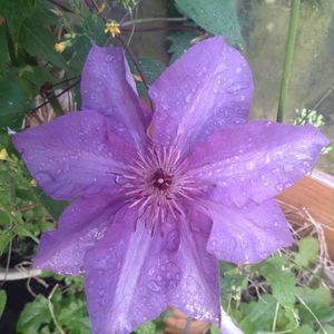 クレマチス ミゼットブルー💜 初めて購入し、初めて育てるクレマチスです🌸🌿 本当は、ビエネッタという品種が素敵だと思ったのですが、お店に良い苗がなくて…このミゼットブルーがお手頃価格で 初心者でも扱いやすい品種みたいだったのでお迎えしました☺️ うまく育つかな💗 ドキドキわくわくです💕 皆様からも情報を頂きながら育てたいです😌