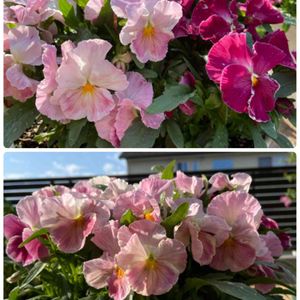 ももこの自家採種苗。同じ鉢を角度を変えて。種を採ったつもりはないけど、さくらこらしい濃い色が混じってた。 今、ぎっしり咲いています。このぎっしり感はもしかして微粉の効果?