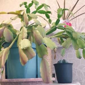 【お部屋の中の植物シリーズ】 トップバッターはシャコバサボテン クリスマスカクタスさん🌵 このコはフォロワーのベランダ大好きさんからお譲りいただきました(*ฅ́˘ฅ̀*)💕 なんでもお母様がたくさん増やされて、置き場が…との事(;^▽︎^) どこのご家庭でも置き場問題は深刻ですね💦 寒くなる前に部屋の中に入れたので、少しずつつぼみをつけ始めてくれました❤️ これもあきにしてはファインプレーだったと自負しております(๑⁼̴̀д⁼̴́๑)ドヤッ‼(笑) 去年は教えて頂いた通り本当にクリスマスの時期に咲きました❣️ 今年も楽しみです(๑˃̶͈̀ω˂̶͈́๑)🎄 上の方にドラセナレインボー、後ろにお義母さんの鸞鳳玉も写っちゃってます(>艸<。)