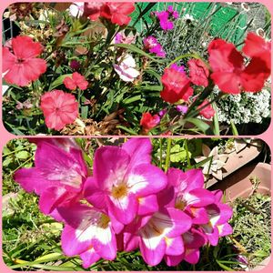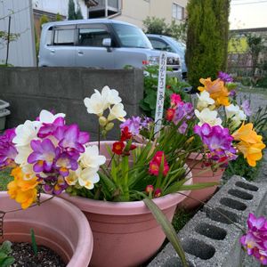 ご近所さんのフリージャーの花 色んな色がキレイに咲いてます。😃💕