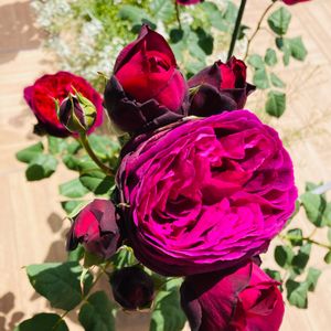 庭のローラアシュレイのつるバラが咲いてきました🌹✨ 毎年可愛い子バラが咲いてくれるのですが、今年はたくさの蕾がなってくれて嬉しい😊💗