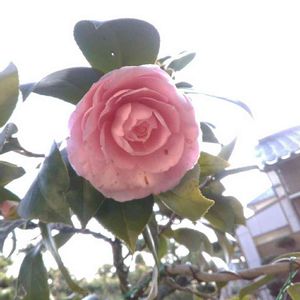 桜之宮公園泉布観地区内の旧桜宮公会堂そばの椿。 薄い桃色から濃い桃色のグラデーションの花びら。まだまだ誇り高く咲いています。