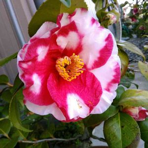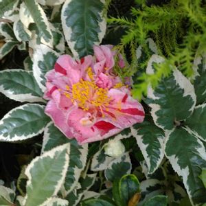椿💕 品種名 不明 雄しべが特徴の椿💕です。 王冠では、ありませんでした。 思い違いしてました。 日本錦にそっくりでは、ないでしょうか。