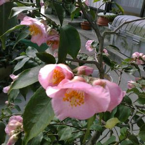 小さな花のツバキ(椿)がいっぱい咲いていました。 育ててられる方とおしゃべりして聞きました。名前分かりませんが 大きな椿の花の方がよかったんだけどなぁ。贅沢な悩みですね。