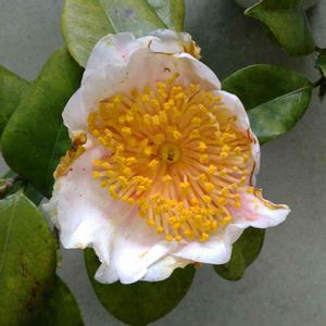 椿💕 初黄 花びら 傷だらけで すみません😣💦⤵。