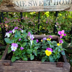 ビオラその1🌼🌱 古くなったブレッドケースに植えました😁 穴を開けるのに一苦労💦😅