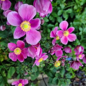 今朝の庭の花② シュウメイギクが盛りです🌼🌱 花が終わった黄色い🟡坊主はカットしています☺️株分けして、4ヶ所位で咲いてます☺️
