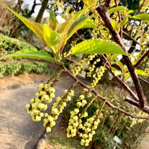 先程写真を間違えて投稿をしてしまいました。 ご指摘を頂き、再投稿いたします。 たつみさんありがとうございました🙇♀️ イイネ👍を下さった方、こちらがナンバンキブシです。 ナンバンキブシ✿✿ キブシの花言葉『待ち合わせ』『出会い』 連なって穂状に花を咲かせる様子から連想されつけられた。 キブシの変種で、海岸近くの山地に生える落葉低木 10cmほどの穂状花序を垂らし、鐘状の黄色い花を多数つける。 神戸市立森林植物園 2019/3/29 撮影