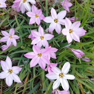 ピンクの花ニラ今年もたくさん咲いてくれました✨✨✨ この隣に定番のムラサキの花ニラを植えたらキレイだなと思うのだけど、絶対にピンクが食われちゃうと思うので、植える勇気がありません💦💦💦 後ろにある黄色はなかなか咲かないし…😅 やっぱり原種は強いですよね✨✨
