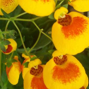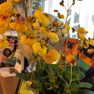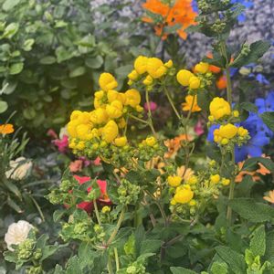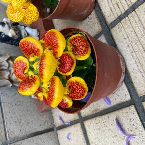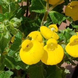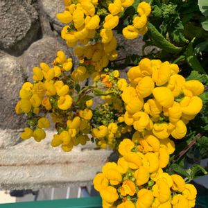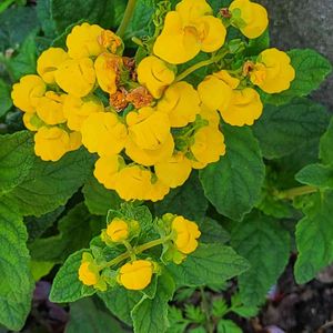 カルセオラリア💛 寄せ植えに入れたお花。 背が高かったのですが、切り戻してから またプクプクと咲いてきました。 同じプクプクのスズランエリカと いっしょで、かわいいコンビ💕
