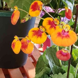 3年目のカルセオラリアが、沢山咲き始めています、可愛いお花です💕😊✌ エメラルドウェーブは何年になるか忘れてしまうほど😅 この前置場所を替えたので、植木鉢を回してやれるようになりました、今は片側だけ🌿が伸びて、孔雀みたいになっています😁