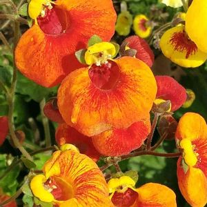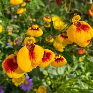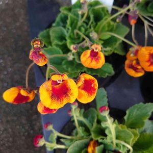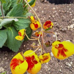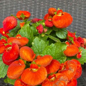 🦮散歩道に咲いてました ❤️カルセオラリア❤️(巾着草) ゴマノハグサ科 袋状の花の形がユニークですね 黄色に赤い斑点の入った子は見た事ありますが赤い子ははじめてです 黄色の帽子👒をかぶって赤いバルーンスカートを履いた女の子に見えます