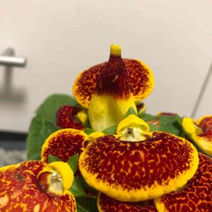 カルセオラリア 🌼🌼 (巾着草) お花の形がユーモラスですね😊 (@お花屋さんの店頭)