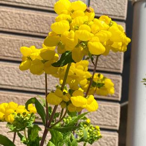 🏷 日曜ビタミンカラー♪ 🏷 ムッチリぷくぷくの日 小さい頃はこのお花をキンギョソウだと思ってました😆 ランチュウみたいなこのお花はだ〜れ? カルセオラリアだそうです🎶🎶🎶 巾着草の方で覚えたいと思います( ¯﹀¯ )♪