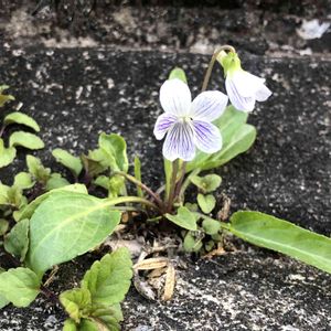 野の花✨すみれ✨ 今年初めて出会いました💜💕 道路脇のコンクリートの割れ目に 種が運ばれて来たのでしょうね😅 道沿いに点在していました💜💕💜