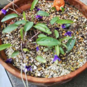 自宅横道路の隅っこで密かに咲いてたスミレちゃん。 ずっと気になってたよ。 いつ車に踏まれちゃうかって💦 コーナンでコケ玉見つけたので スミレちゃん避難^ - ^♡