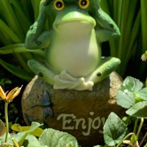すみれさんも、スノーフレークさんも花が終わりました、今年もありがとう🍀みどりの中でカエル🐸さんがリラックスしてました🐸